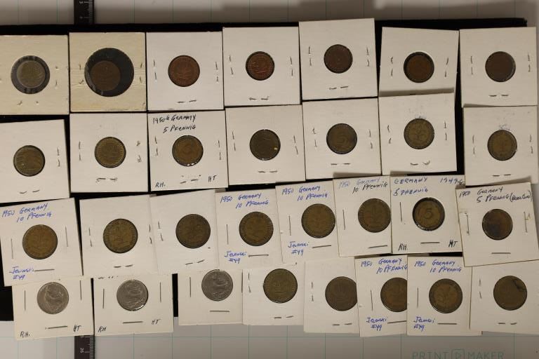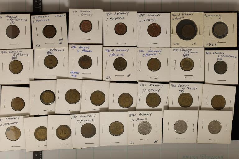 2-2 PFENNINGS (1962 & 1995), 10-5 PFENNIGS (1903-1966). 11-10 PFENNING (1950-1993) AND 3-50 PFENNINGS (1950-1969) MAY NOT CONTAIN ALL DATES AND MAY CONTAIN DUPLICATES.