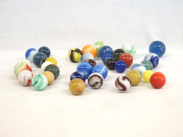 30+ Antique Estate Marbles, 30 Aggies, 4 B.B.'s, and 1 Clay, plus