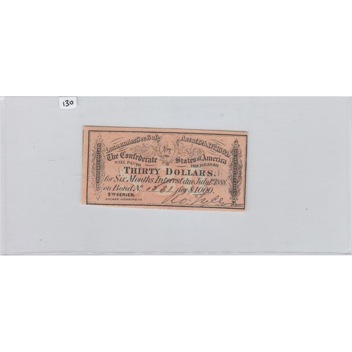 $30 CONFEDERATE CONFEDERATE GSA 1864 BOND