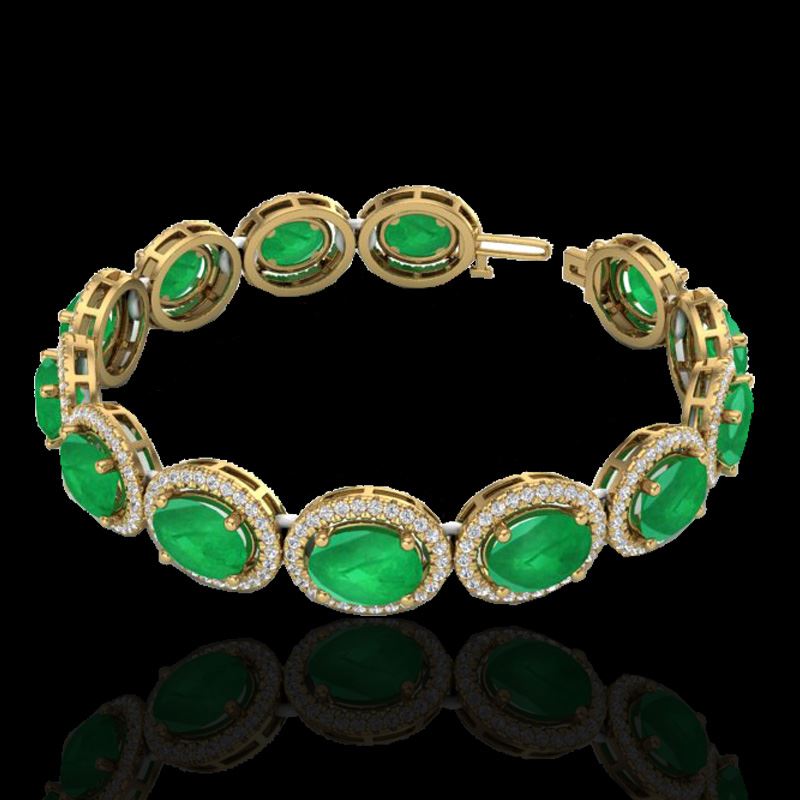 REF-481W8F -22687 ---- 30 CTW Emerald & Micro Pave VS/SI Diamond Bracelet 10K Yellow Gold ---- Luxury Designer Brand Bracelet Appraised at $34,450 Certificate Number US22687 10k Yellow gold, Bracelet Size is 7 1/2 Inches, Bracelet measuring approx. 1/2" X 7.5" , weighing in total approx. 22 grams. Made in the USA and is stamped 10k, Main stone 26 carat total weight containing 15 pieces of Intense Green color with AAA quality Oval shape cut Emerald , Stone #2 4 carat total weight containing 375 pieces of H-I color with VS/SI quality Round shape cut Diamond