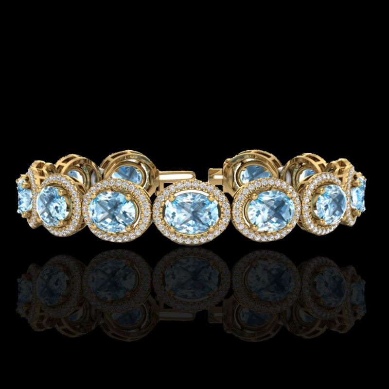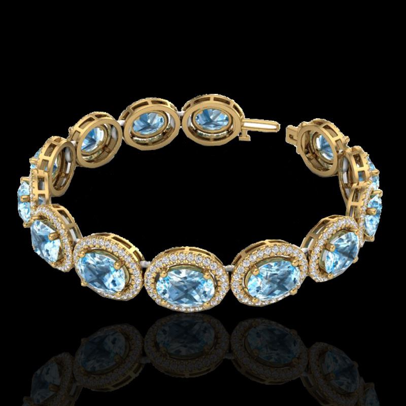 REF-360Y2K -22701 ---- 30 CTW Sky Blue Topaz & Micro Pave VS/SI Diamond Bracelet 10K Yellow Gold ---- Luxury Designer Brand Bracelet Appraised at $27,700 Certificate Number US22701 10k Yellow gold, Bracelet Size is 7 1/2 Inches, Bracelet measuring approx. 1/2" X 7.5" , weighing in total approx. 22 grams. Made in the USA and is stamped 10k, Main stone 26 carat total weight containing 15 pieces of Translucent Sky Blue color with AAA quality Oval shape cut Topaz , Stone #2 4 carat total weight containing 375 pieces of H-I color with VS/SI quality Round shape cut Diamond