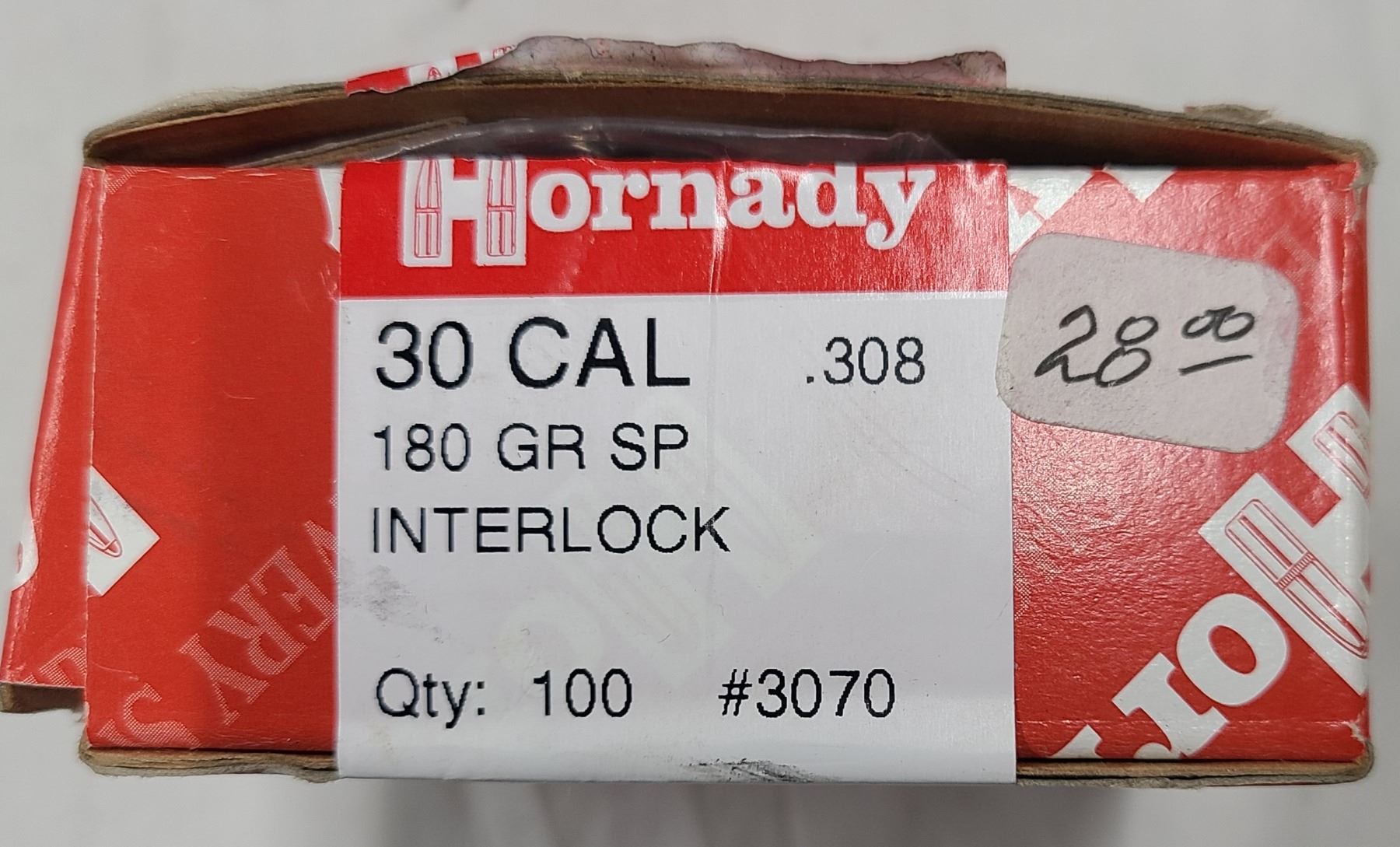 30 Cal Hornady 180 gr Interlock BULLETS - 100 rds