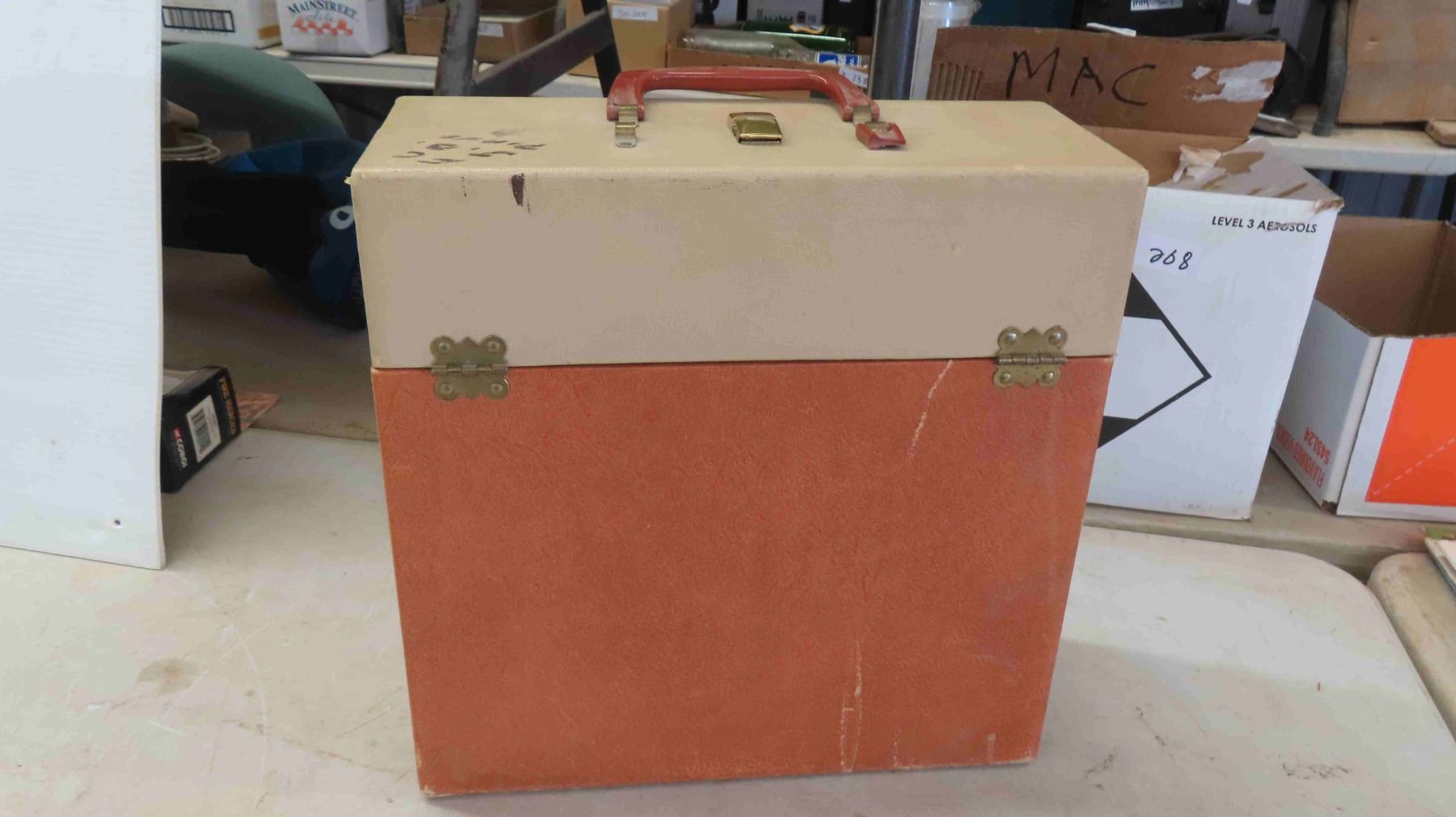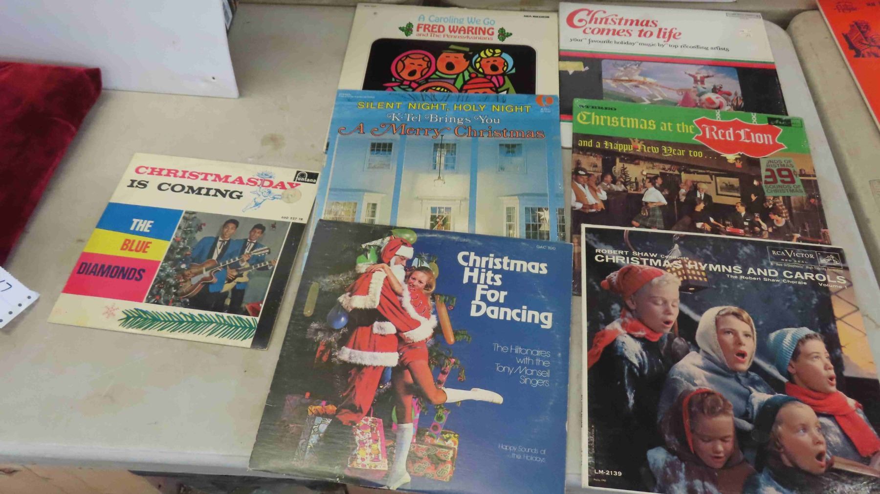 30 Christmas Albums with Case ; Andy Williams, Nat King Cole, plus others - handle on case broken - pictured