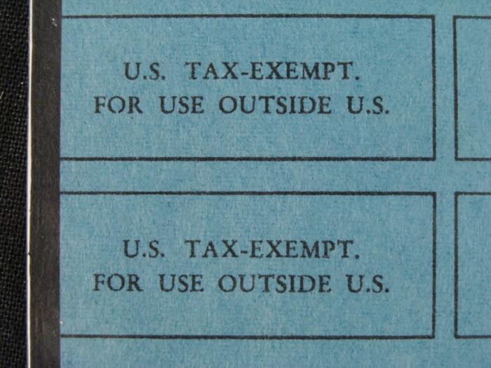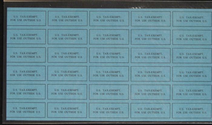 This uncut sheet of 30 U.S. tax exempt Cigarette stamps was made for use outside the U.S. These are in mint condition, with no gum. They are obsolete, and scarce in this condition.