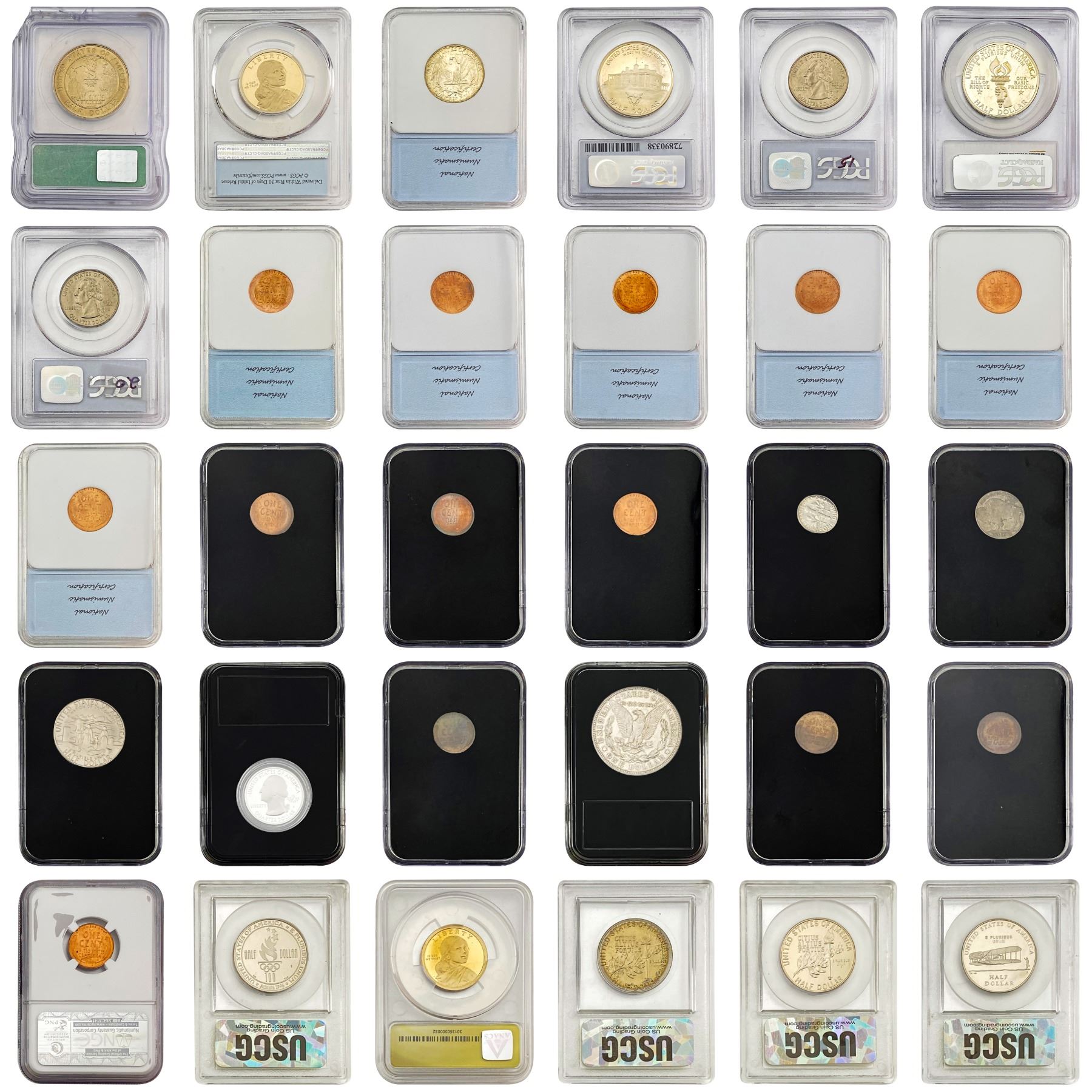 COINS AND CURRENCY LISTED IN GSA’S CATALOG AS GRADED AND ENCAPSULATED BY PCGS, NGC, ANACS, ICG, PCGS CURRENCY, PMG, PCGS BANKNOTE GRADING, CMC OR ANY OTHER THIRD-PARTY GRADING SERVICE ARE LIKEWISE SOLD “AS-IS” EXCEPT AS EXPRESSLY SET FORTH HEREIN. ALL THIRD-PARTY GRADING SERVICE GUARANTEES, INCLUDING AUTHENTICITY, ARE THE SOLE RESPONSIBILITY OF THE THIRD-PARTY GRADING SERVICE AND NOT WARRANTIES OR GUARANTEES OF GSA. BIDDERS SHOULD CONTACT THESE THIRD-PARTY GRADING SERVICES DIRECTLY WITH RESPECT TO ANY CLAIMS OR QUESTIONS THEY MAY HAVE CONCERNING THEIR GUARANTEES AND WARRANTIES. BIDDERS ACKNOWLEDGE AND AGREE THAT AUCTIONEER IS NOT BOUND BY OR LIABLE FOR ANY OPINION OR CERTIFICATION BY ANY THIRD-PARTY GRADING SERVICE. REMOVAL OF A PRODUCT FROM ITS PROTECTIVE CASING OR HOLDER OR ALTERATION OF ANY COIN HOLDER WAIVES ALL RIGHTS CONCERNING THE PRODUCT CONTAINED THEREIN.
