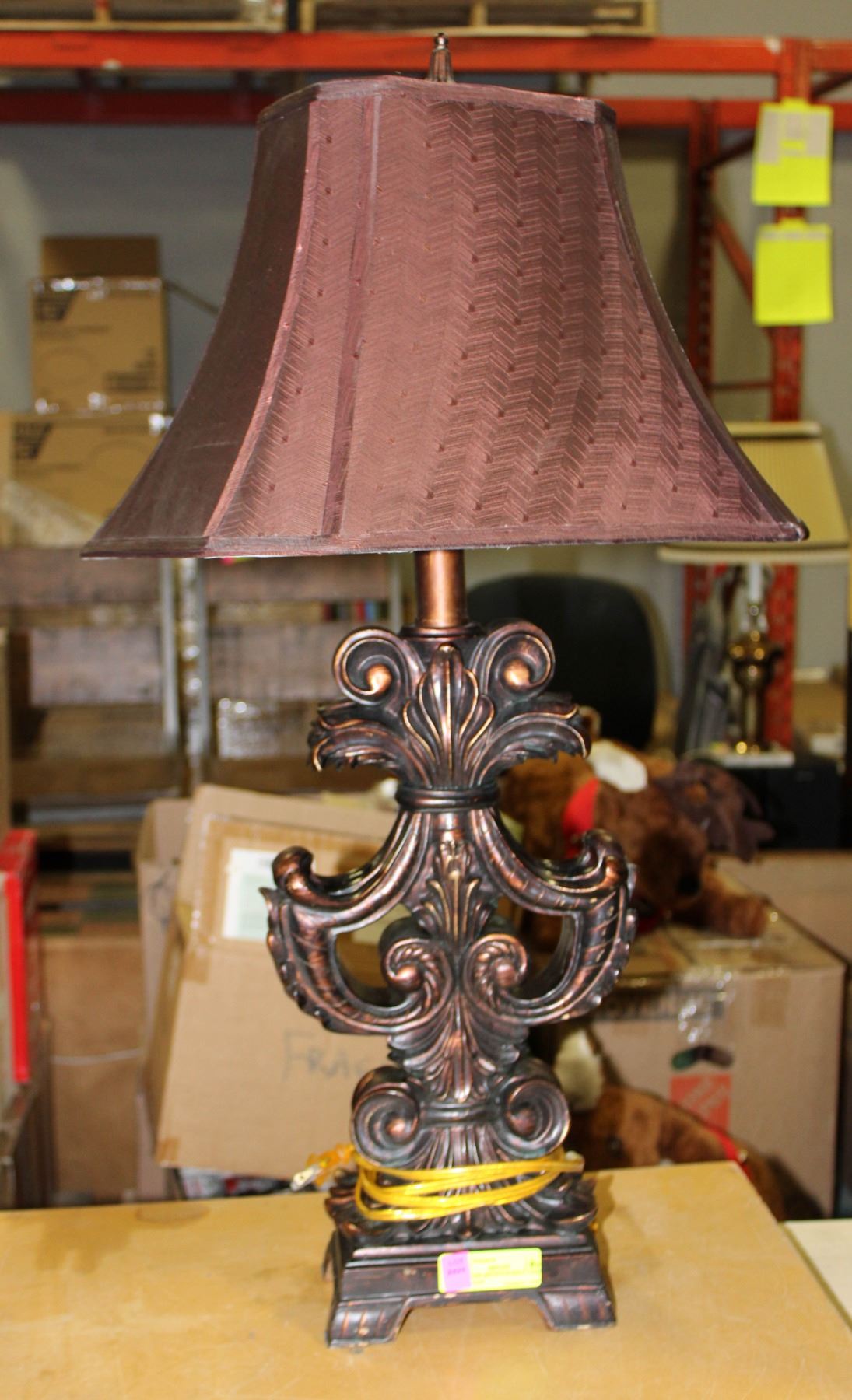30" DARK BROWN SCROLL LAMP AND SHADE