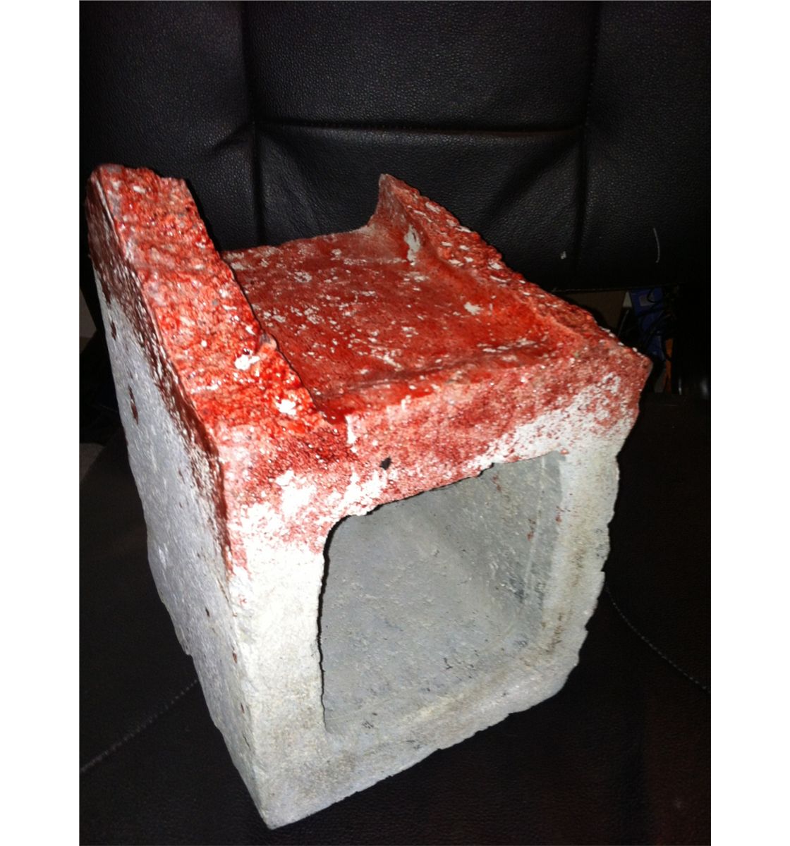 This is from 30 days of night dark days and is a prop concrete cinder block that was screen used in the film. In the film Paul had the block and then Stella had used the block to do some serious damage, hence all the fake blood.