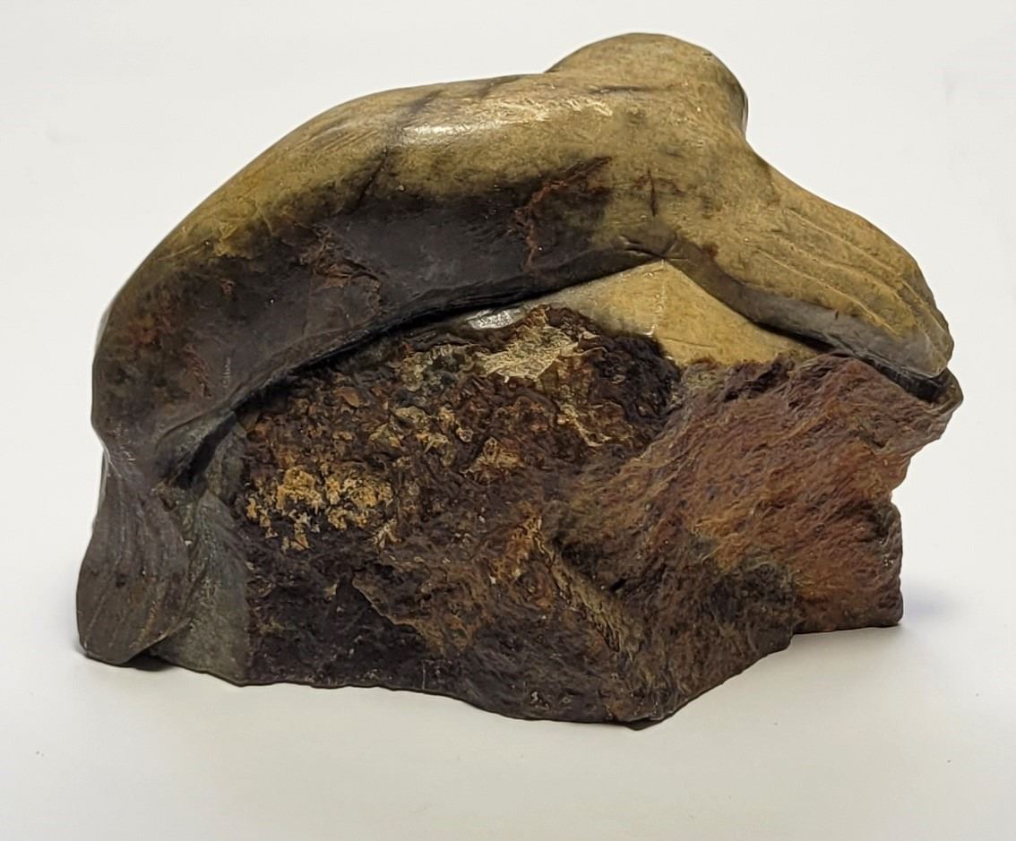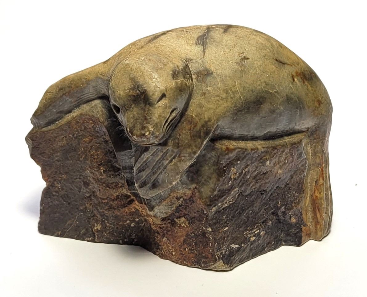 30) HAND CARVED HARBOUR SEAL ON ROCKS, FROM