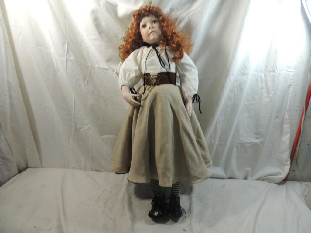 ON STAND OLLECTIBLE DOLL, DESIGNER DOLL, GREAT CONDITION, FROM PRIVATE DOLL COLLECTION, UNIQUE DOLL, VINTAGE DOLL, AS SHOWN SEE PHOTO FOR MORE DETAILS.