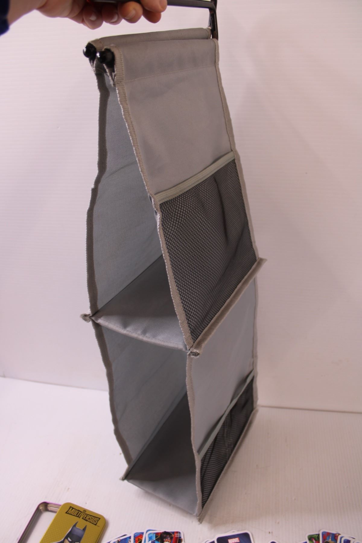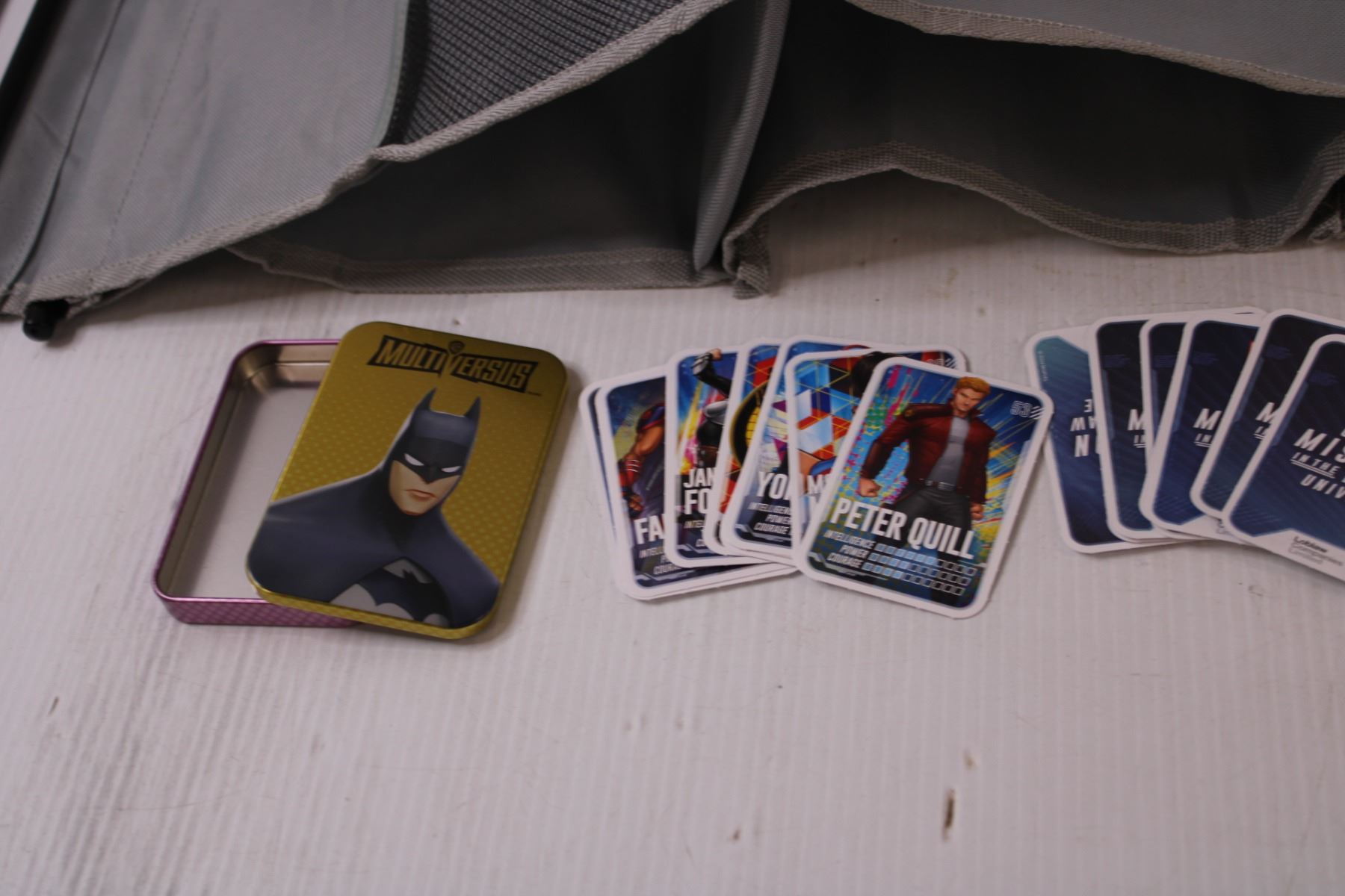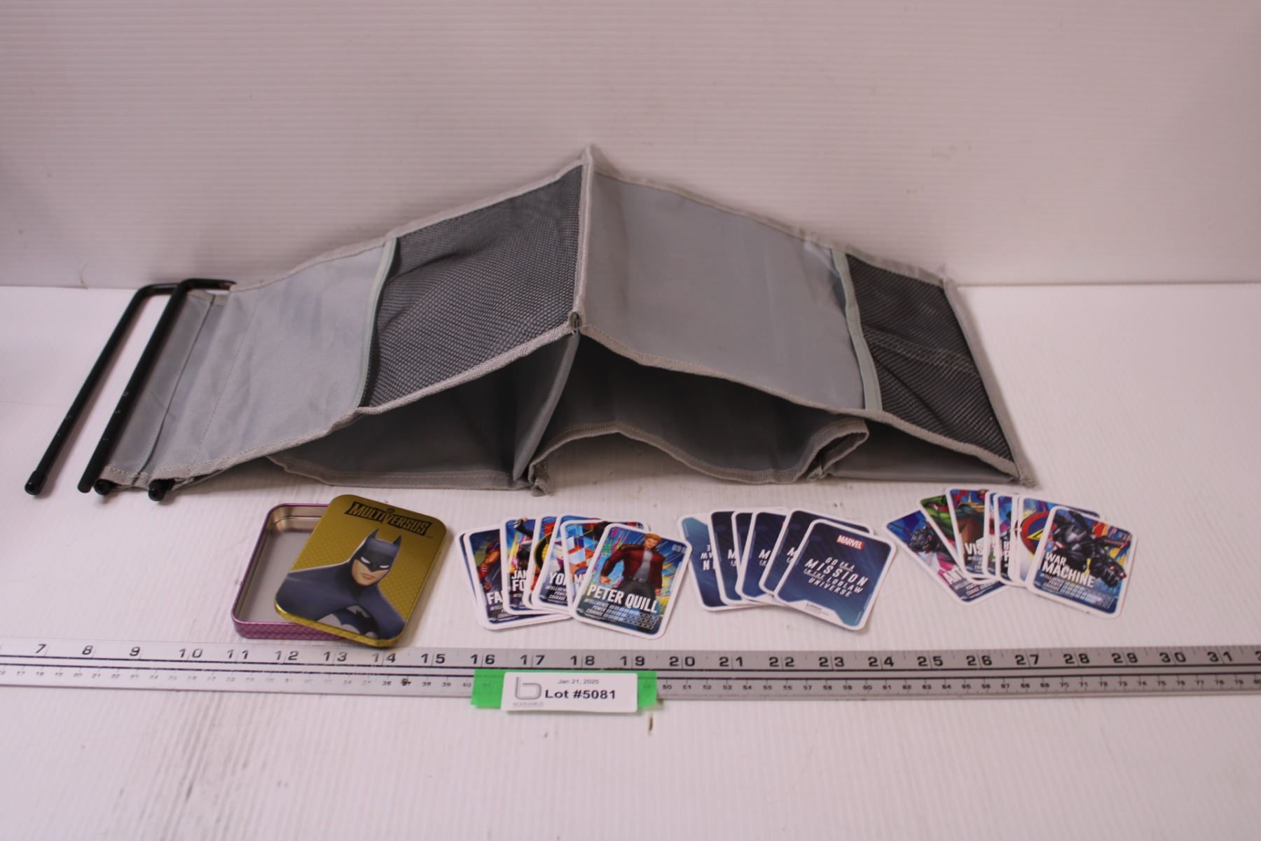 (30+) Marvel Collector Trading Cards, DC Batman Tin Card Case, Locker Hanging Organizer