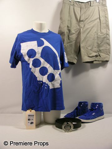Thirty Minutes or Less -Chango (Michael Peña) screen worn, blue with white logo on the front and arm crew neck t-shirt, khaki "Famous Stars & Stripes" shorts, black American Flag style "Famous Stars & Stripes" belt, and blue high top "Puma" shoes. (size 10) Includes wardrobe tag!