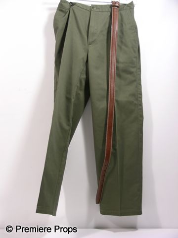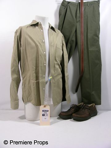 30 Minutes of Less - The Major (Fred Ward) screen worn, tan dress shirt, white t-shirt, green pleated pants, brown leather belt, and brown lace up the front shoes. Includes wardrobe tag!