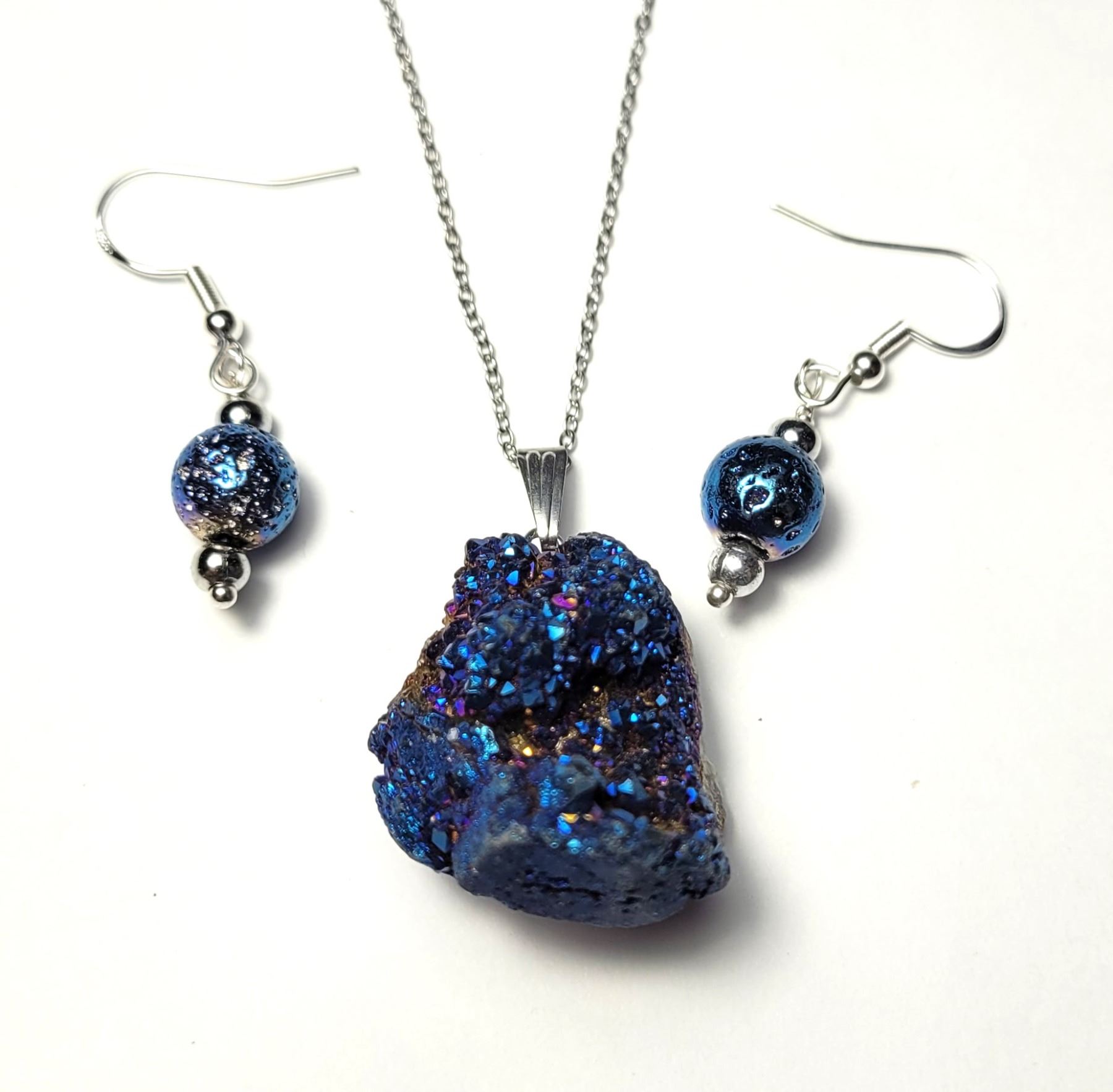 ON 18" CHAIN AND COORDINATING TITANIUM DROP EARRINGS ON 925 STAMPED FISHHOOKS.