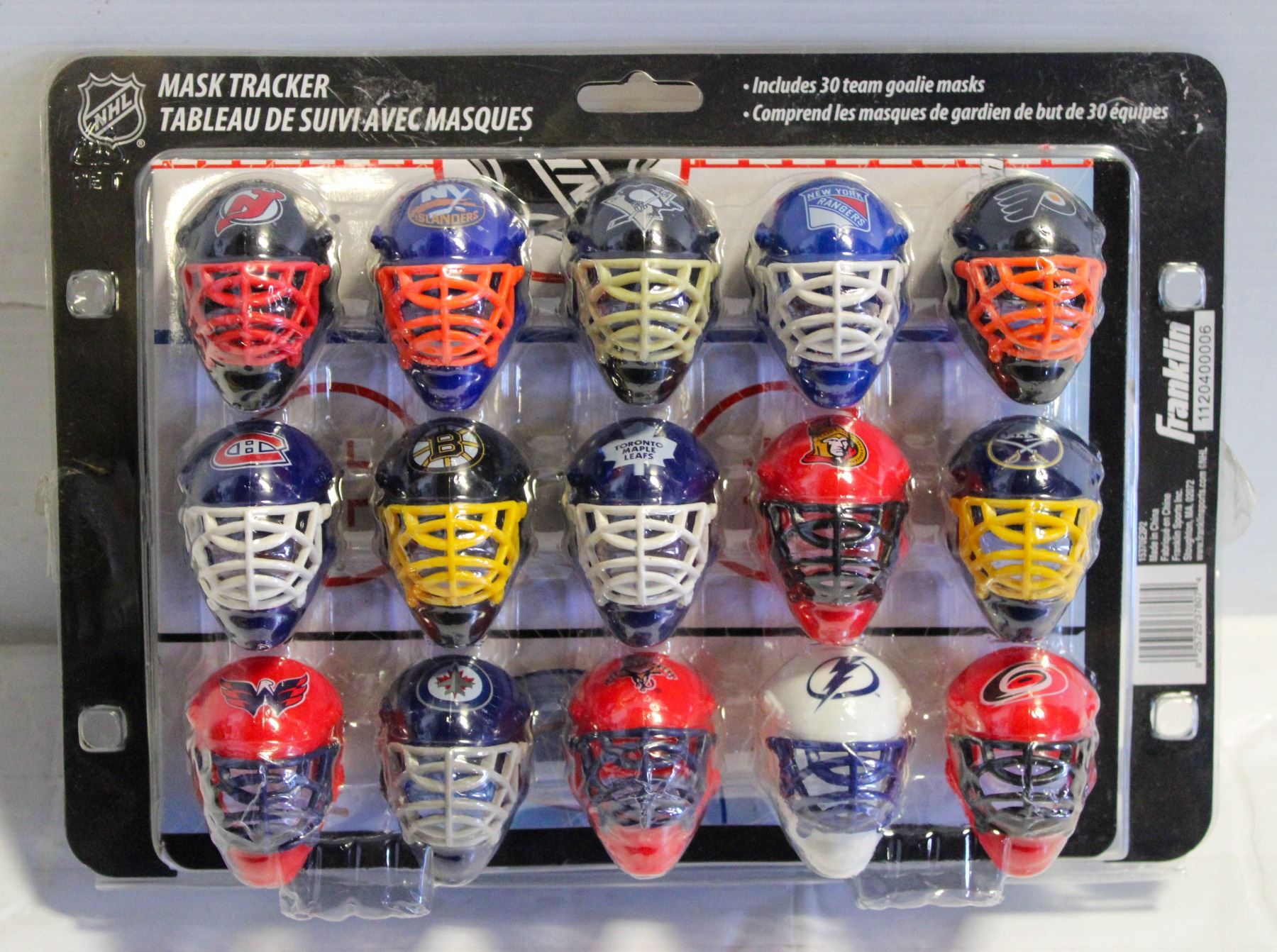 30 NHL GOALIE MASKS W/DISPLAY BOARD