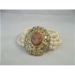 4 Strand Faux Pearl & Pink Cameo stretch Bracelet