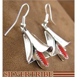 Janice White Handcrafted Coral Bear Paw Small Dangle Earrings Sterling Silver .925 Native American