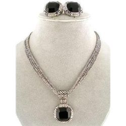Silver, black, rhinestone Necklace & matching clip on earring set