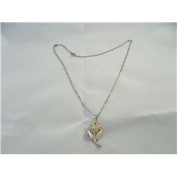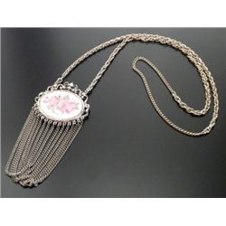Hand Painted Ceramic Rose Necklace, Signed Pierce