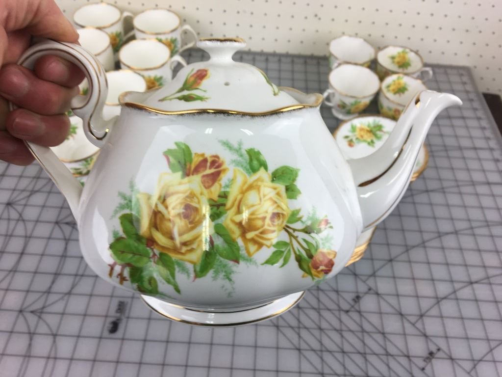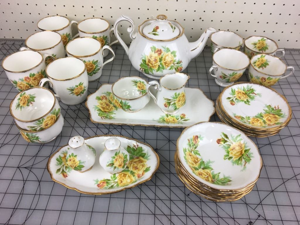 30 PIECES OF ROYAL ALBERT “TEA ROSE” CHINA TEA POT CREAM SUGAR EXCELLENT COND.