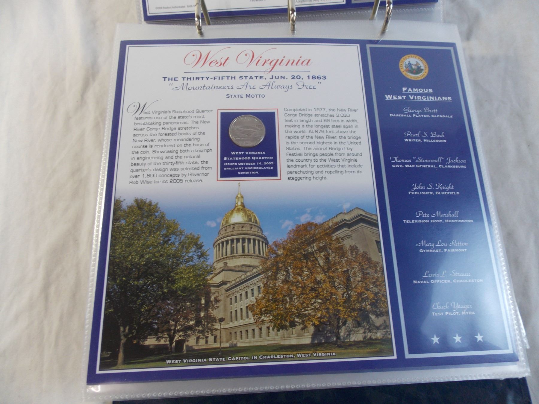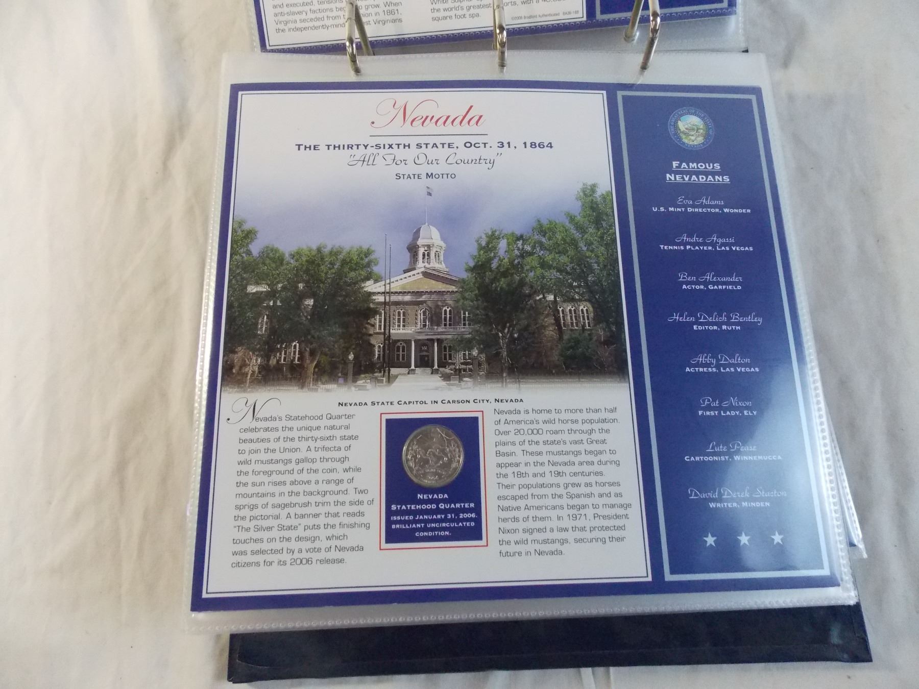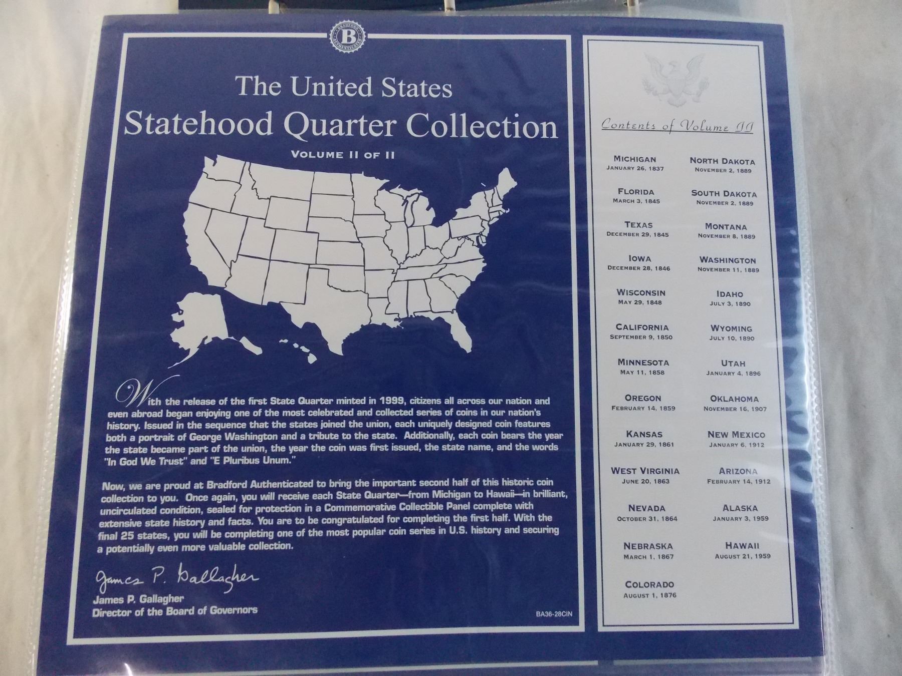 (30) Quarters - Bradford Binder with United Statehood Quarters - Volume 2 (missing Wisconsin)