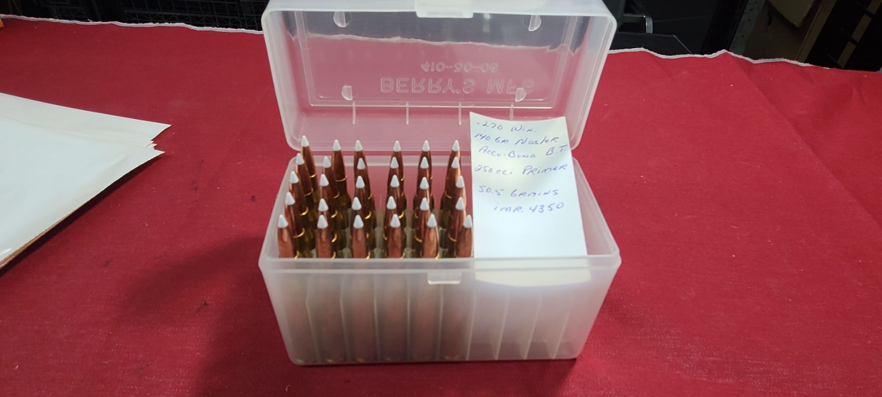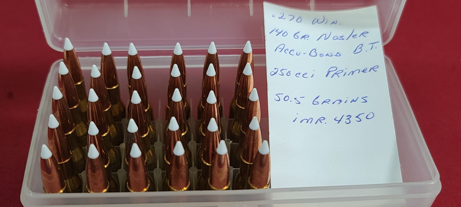 30 ROUNDS OF .270 WIN 140GR NOSLER ACCUBOND BT 250 CCI PRIMED 50.5 GRAINS OF IMR4350 LOADED BY ROSS'S CUSTOM AMMO - NO SHIPPING ON AMMUNITION