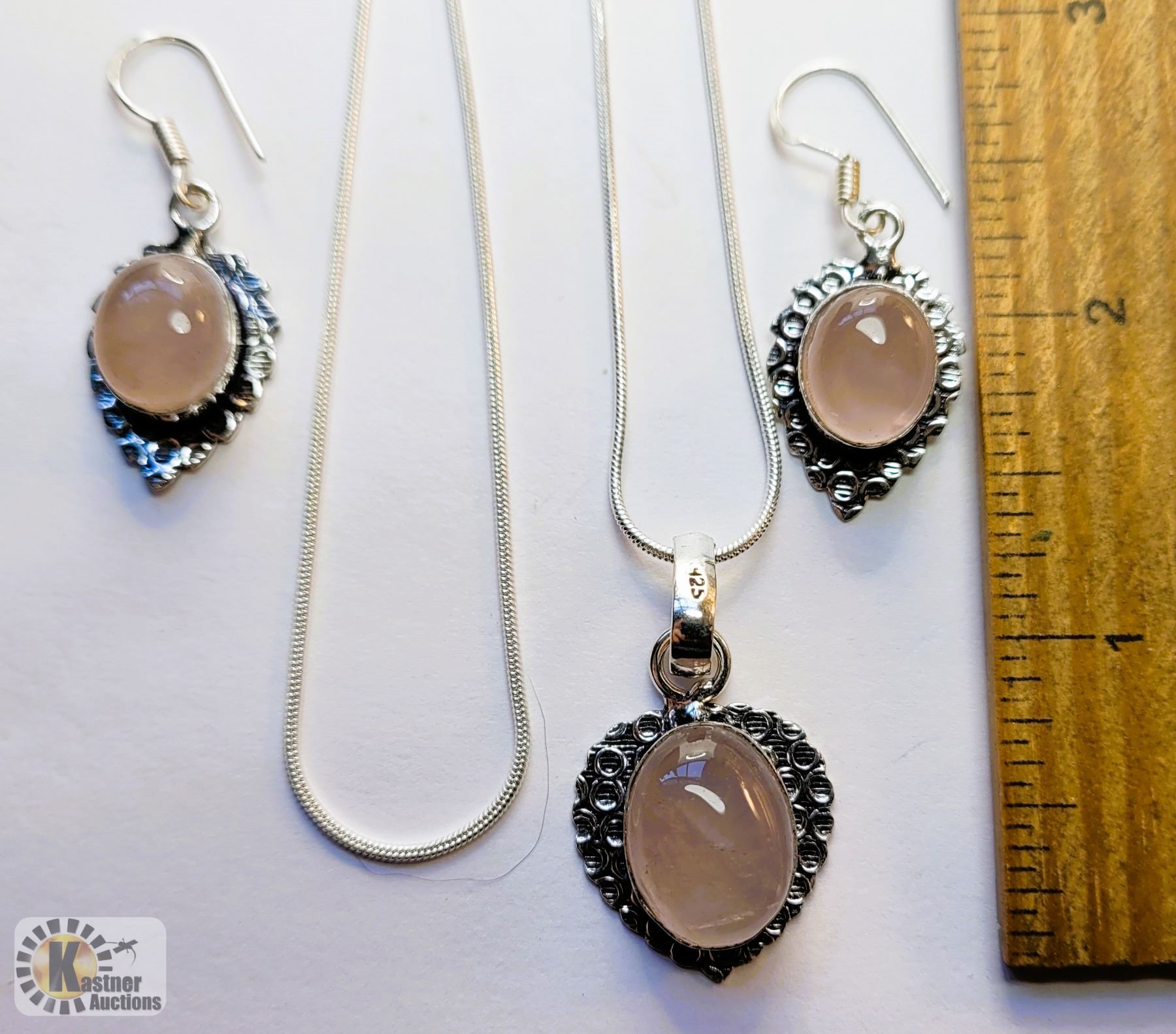 MATCHING PENDANT ON 18" SILVER PLATED CHAIN, ALL SETTINGS ARE STAMPED 925 SILVER. JEWELLERY