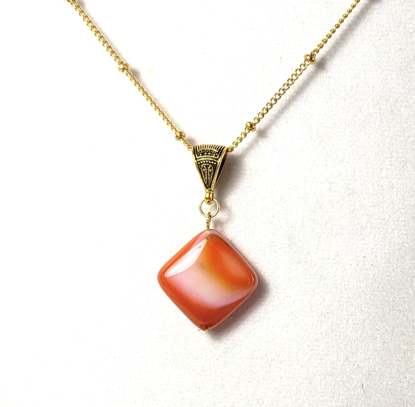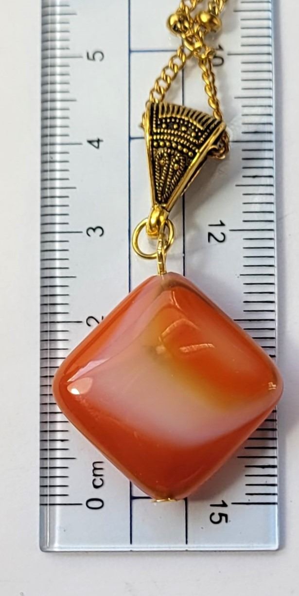 INDIAN AGATE PENDANT ON 18" GOLD TONE CHAIN. JEWELERY