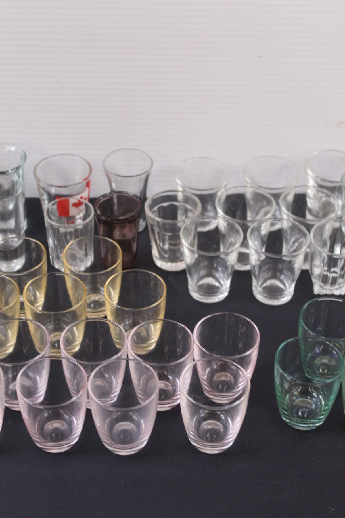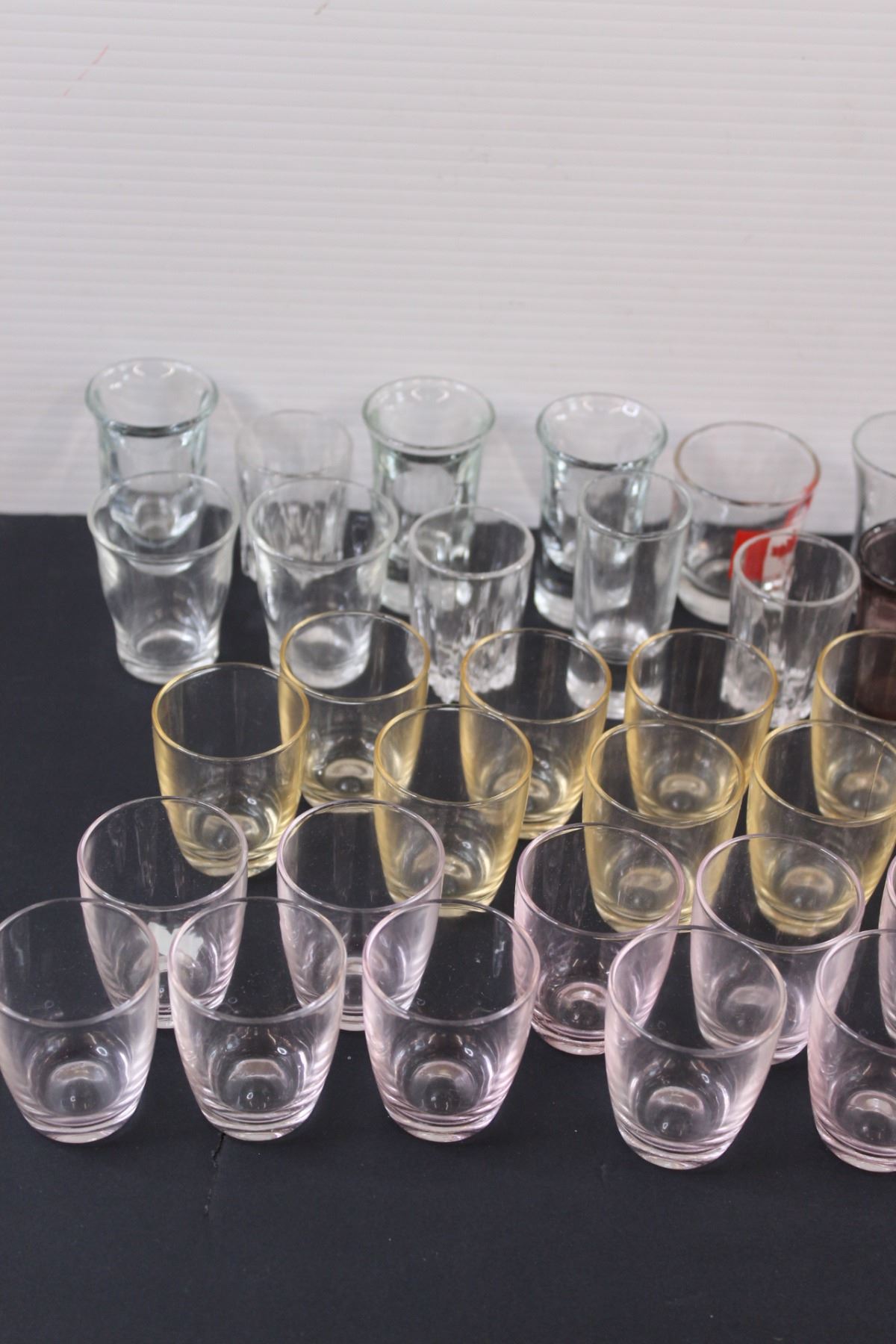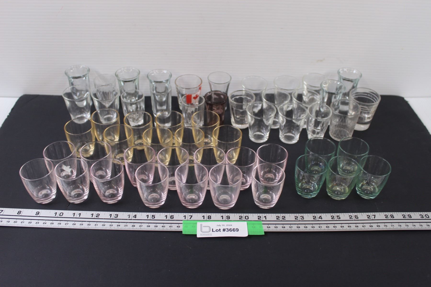 (30+) Shot Glasses: Colored Glass Variety & Clear Glass Assorted