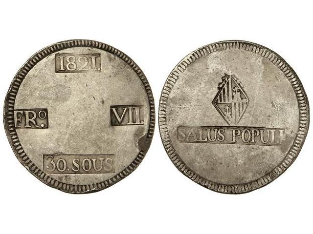 30 Sous. - 1821. - PALMA DE MALLORCA. - (Golpe). Cal-525. (MBC). - -