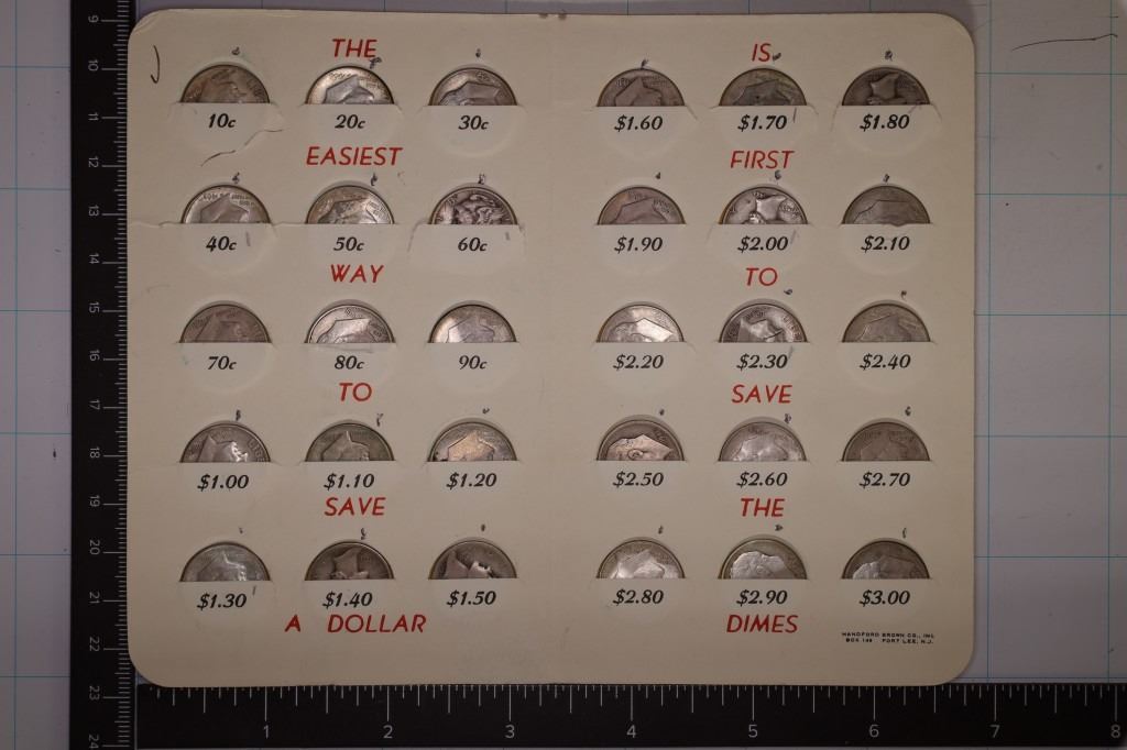 SAVING BOOK: 5 MERCURY DIMES (1936-1944) AND 25 ROOSEVELT SILVER DIMES (1946-1964) MAY NOT CONTAIN ALL DATES AND MAY CONTAIN DUPLICATES.