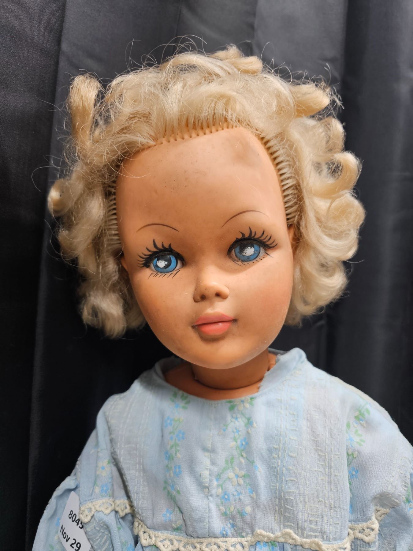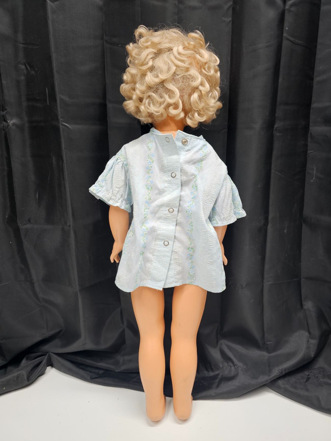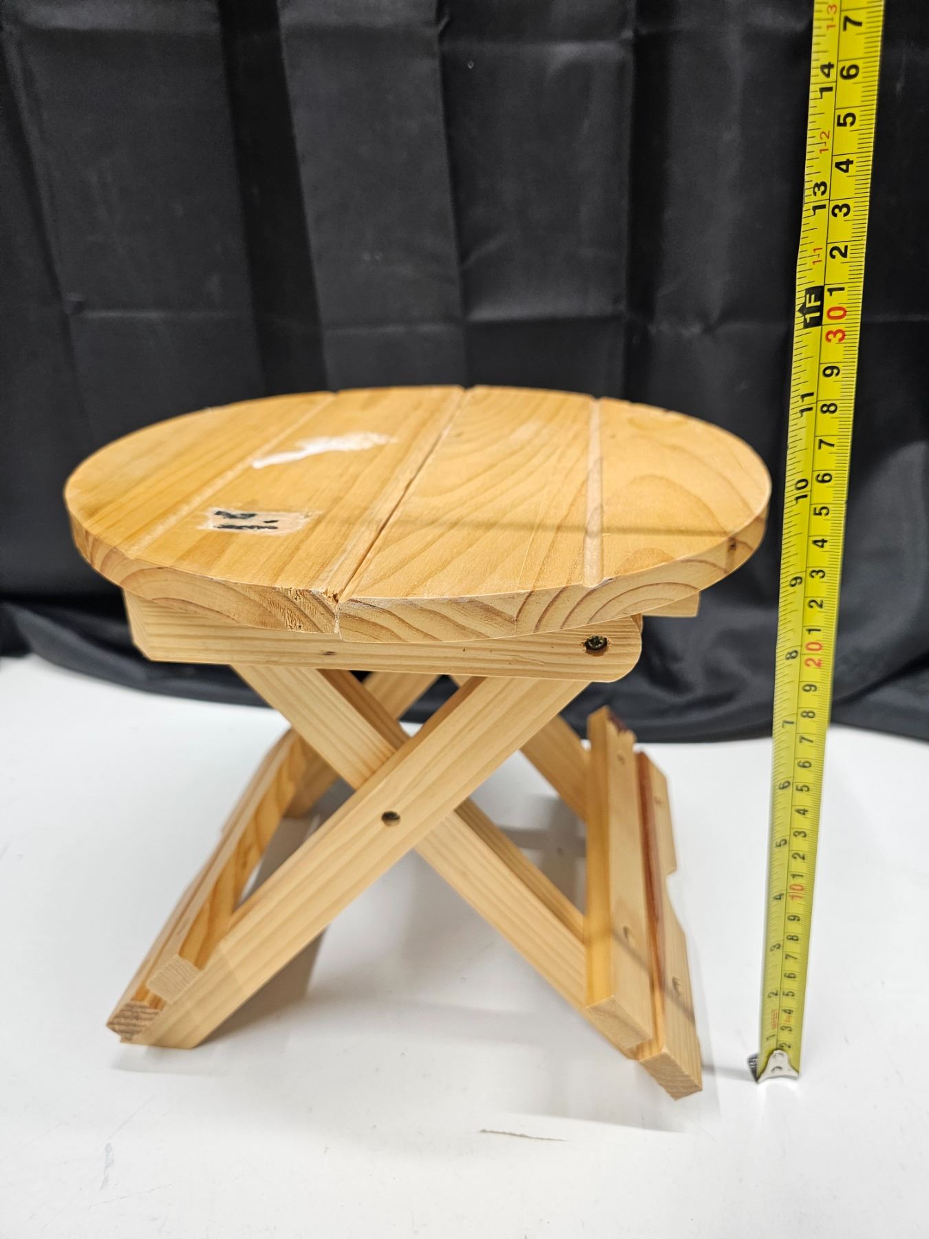 30" Vintage Doll with Wooden Doll Crib and Small Foldable Wooden Stool