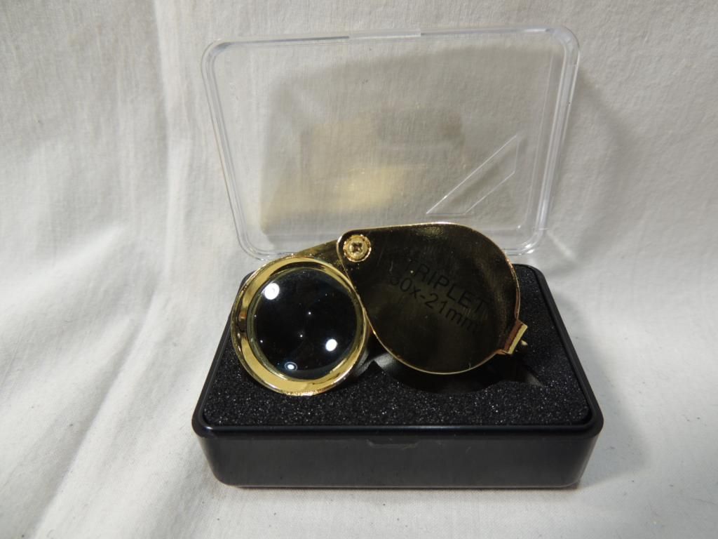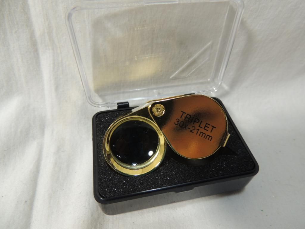 30x 21MM TRIPLET JEWELERS LOUPE WITH CASE. PROTABLE MINI 30X21MM TRIPLET JEWELERY LOUPE FOR JEWELRY TOOL EQUIPMENT. AS SHOWN. SEE PHOTO FOR MORE DETAILS.