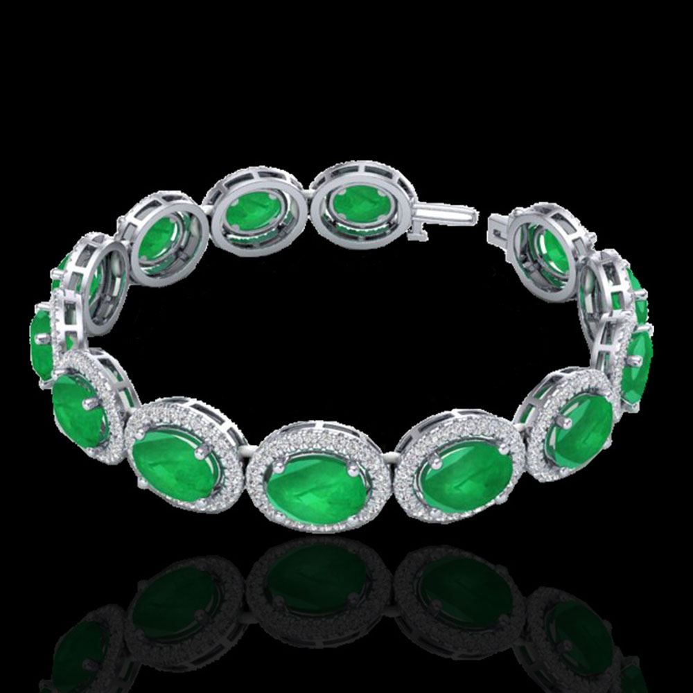REF-481W8H - SKU: 22686 ---- 30 ctw Emerald & Micro Pave VS/SI Diamond Bracelet 10k White Gold