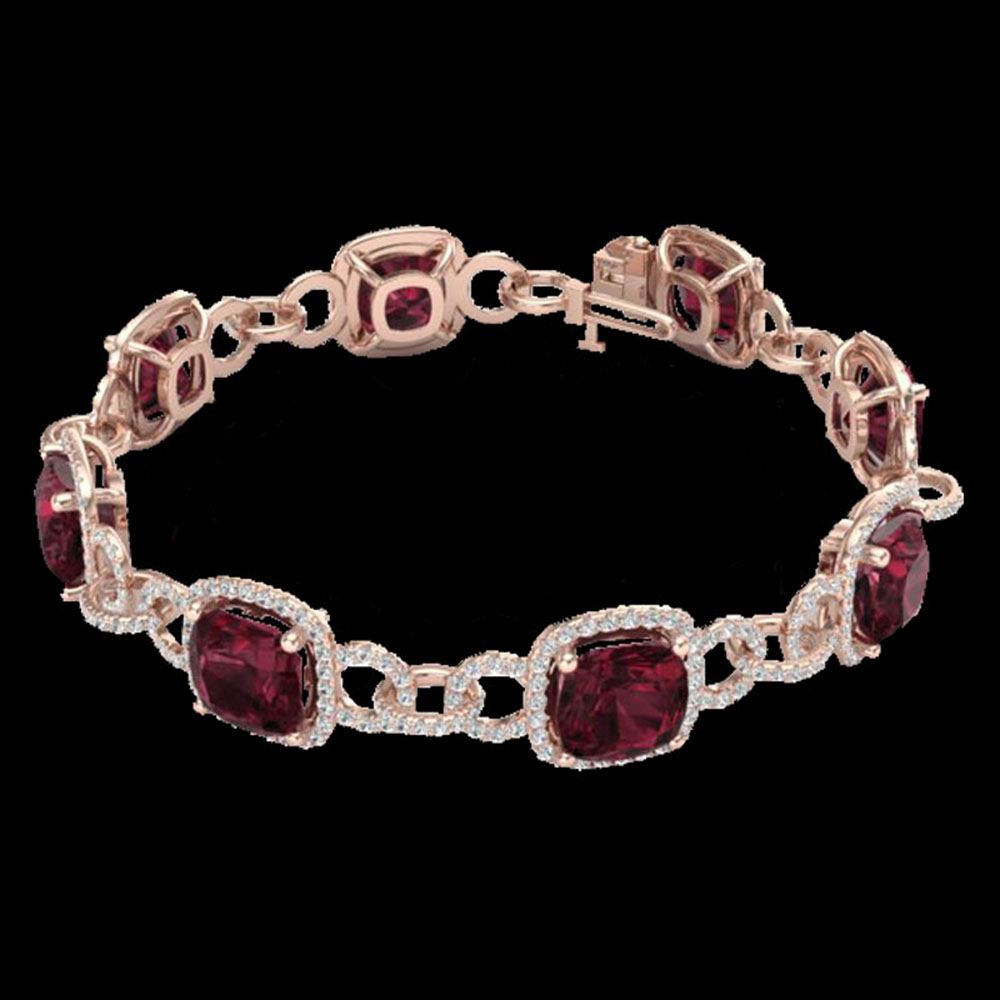 REF-368K9Y - SKU: 23024 ---- 30 ctw Garnet & Micro VS/SI Diamond Certified Bracelet 14k Rose Gold