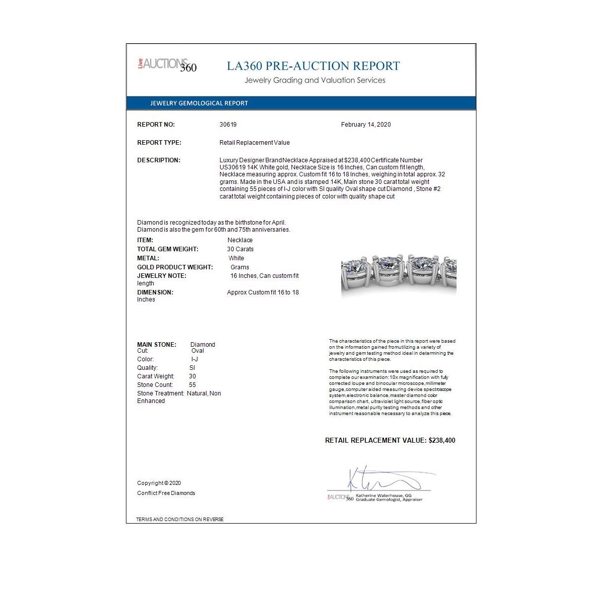 REF-4470H2R - SKU: 30619 ---- 30 ctw Oval Certified SI Diamond Necklace 14K White Gold