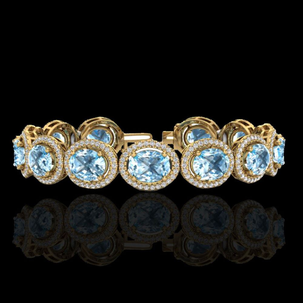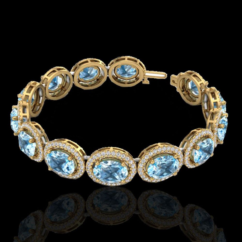 REF-360X2A - SKU: 22701 ---- 30 ctw Sky Blue Topaz & Micro Pave VS/SI Diamond Bracelet 10k Yellow Gold