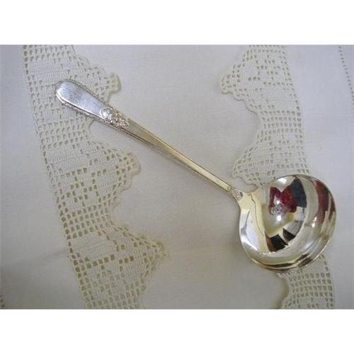 LOVELY 1930's SILVERPLATED LADLE, MADE IN ART DECO STYLE,BY 1847 ROGERS BROS SILVERPLATE, BEAUTIFUL!, Measuring about 6 1/2 inch long, excellent, hardly used, and in great condition with silver still intact, This silver item have been hand polished and washed, but I recommend washing all items with a gentle dish soap before using with food.