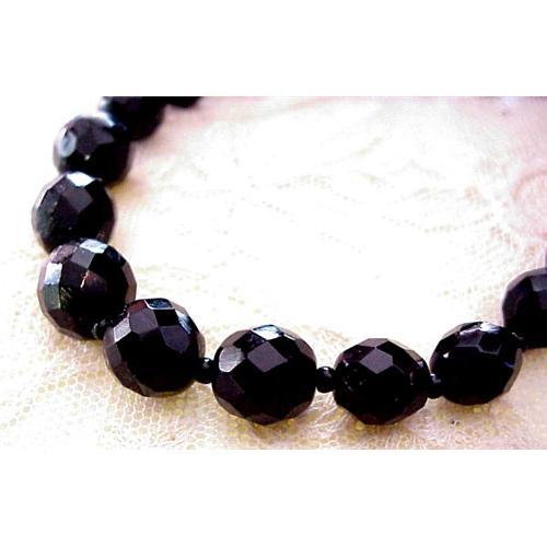 Gorgeous black beads, made of highly faceted black glass, FRENCH BLACK JET BEADS.Beautiful long graduated strand of beads, that would look good on any color.Excellent condition.US Buyer please pay 6.00 for shipping plus insurance.Thank You for looking.