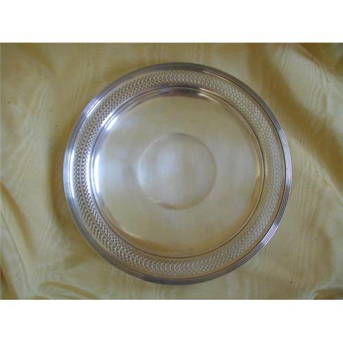 VINTAGE GORHAM STERLING SILVER 10 INCH ROUND FOOTED TRAY WITH ELEGANT CUT-OUT BORDER / STAMPED: STERLING LION ANCHOR G HALLMARKS / BLACK STARR & FROST STERLING // Black Starr & Frost was the New York City jeweler retailer. This tray is mint with no dents and very heavy sterling silver.// BURTON BROOK FARM ANTIQUES