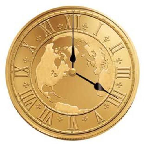 $300.00 Gold, 2005 120th Anniversary of the International Implementation of Standard Time, 1885-2005, Pacific Time 4:00 Proof. 200 minted only. 58.33% Gold, 41.67% Silver, 45.0 Grams. 0.8440 oz AGW.