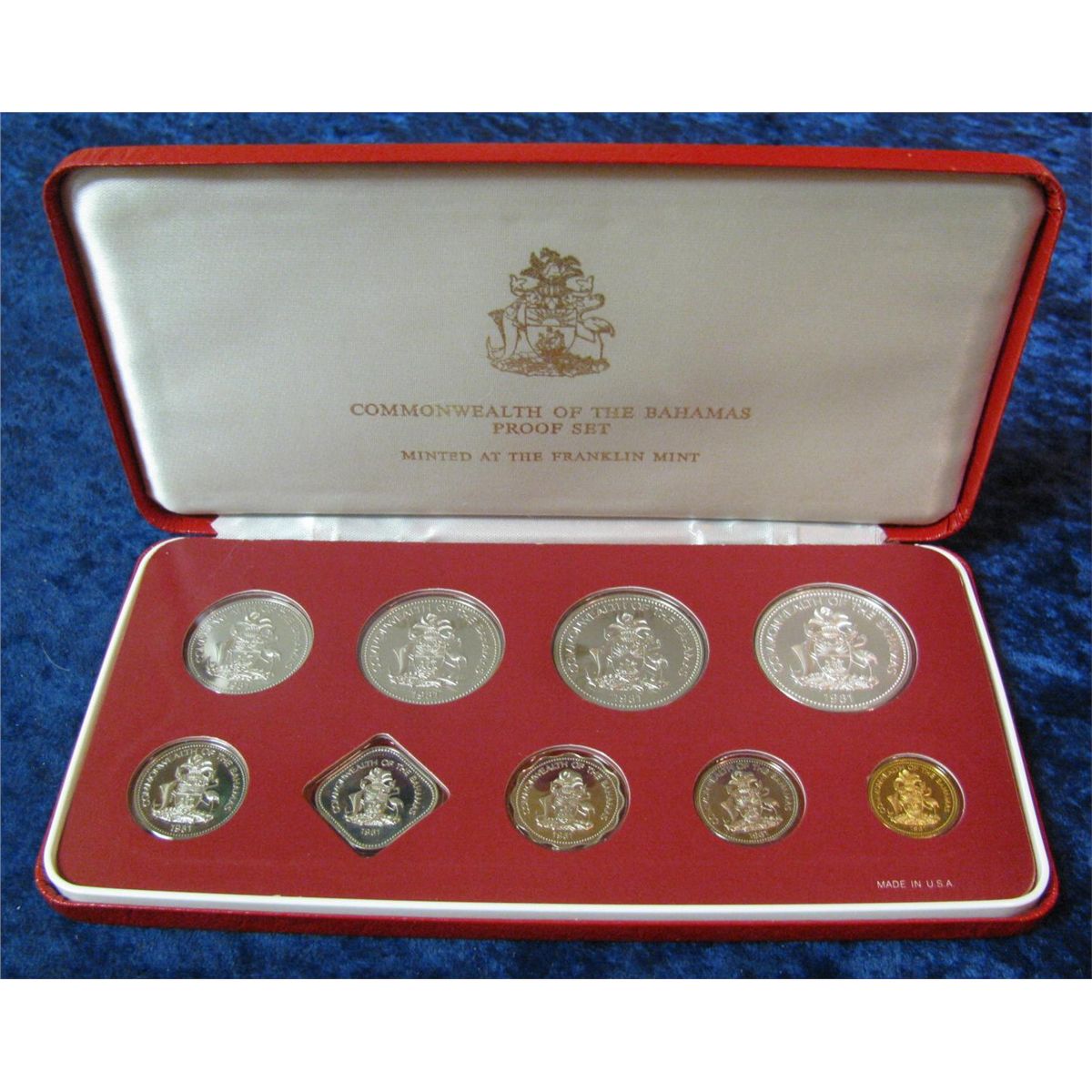 300. 1981 Bahamas 9 Piece Proof Set. Original as issued. Mtg. 1,980 sets. KM Value $100.00. The Five Dollar coin contains 0.6771 ozs. Silver.