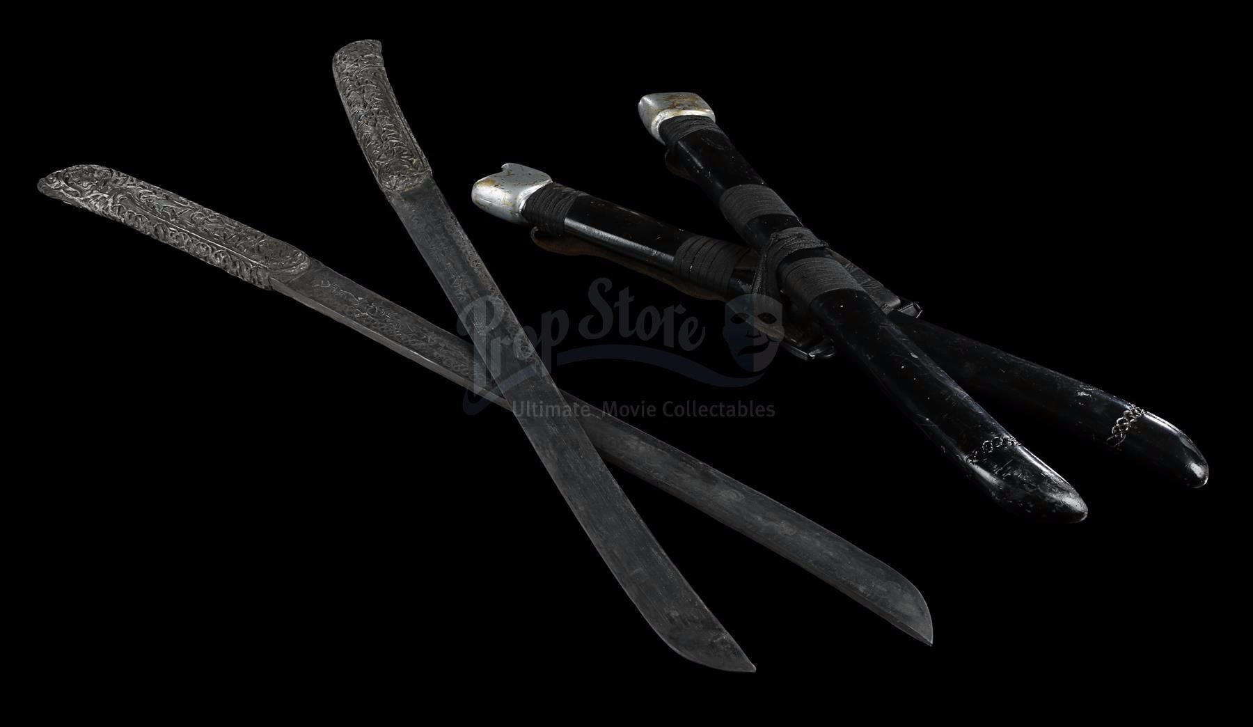 A pair of Immortal Warrior swords and scabbard from Zack Snyder's swords-and-sandals action film 300. The deadly Persian soldiers use their weapons during the epic battle scenes throughout the film.