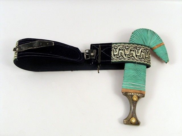 The none stop battle and blood fest "300" (2006) is the true story of 300 men under the leadership of King Leonidas who fight the seemingly outmatched Persian Army at Thermopylae all the way back in 480 B. C. This is an intricate purple felt belt with turquoise sheath and dagger.