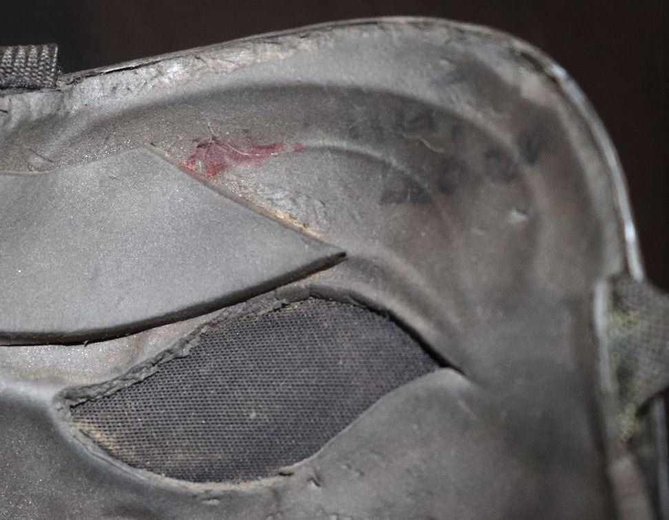 There is some blood and a name written inside but it has worn with film use. I can't quite make it out.