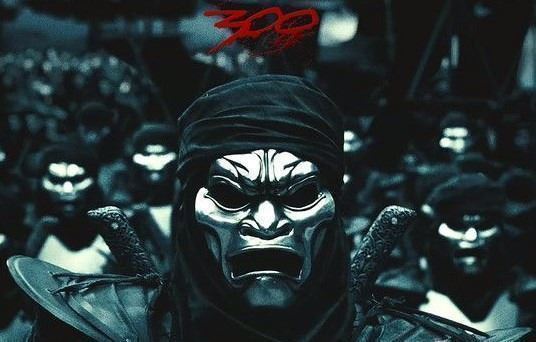 There were 40 of these Immortal masks made for use in the film 300, but only 1 was made like this with the full inner padding for close up shots. Though all were technically Heroes, this is one you see up front! "Most likely" the one you see in the Screen shot! I also believe this to be the one that gets torn off, revealing the Immortal face.
