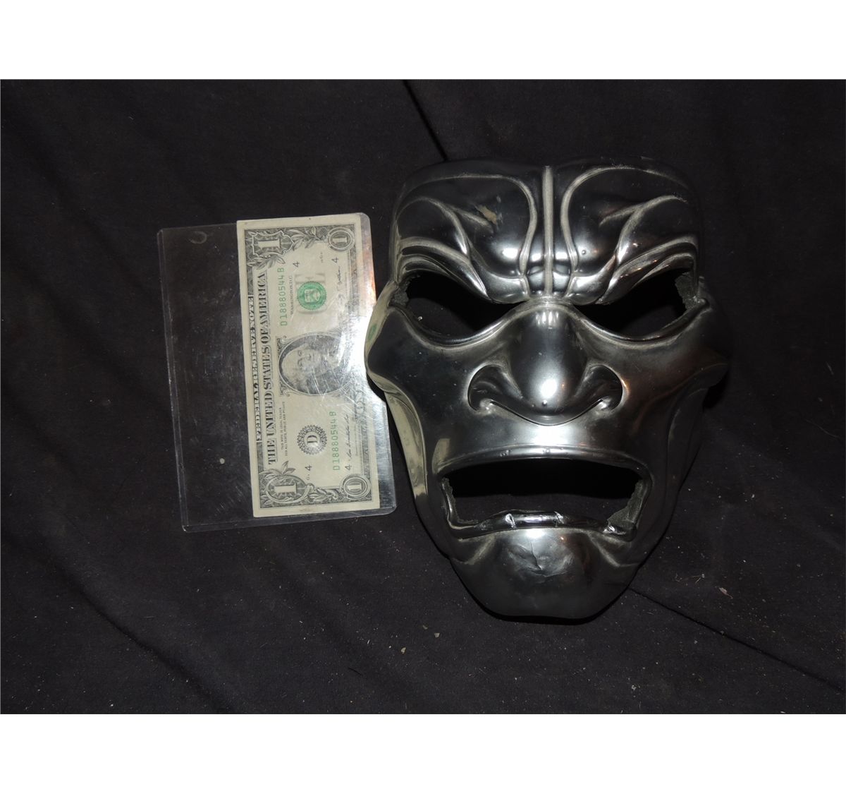This is the original Prototype IMMORTAL mask made during production of 300. This was the very first pull from the mold as a materials test. It is cast in a type of urethane or vinyl, and was struck several times with a stunt sword to see how it reacted to damage.