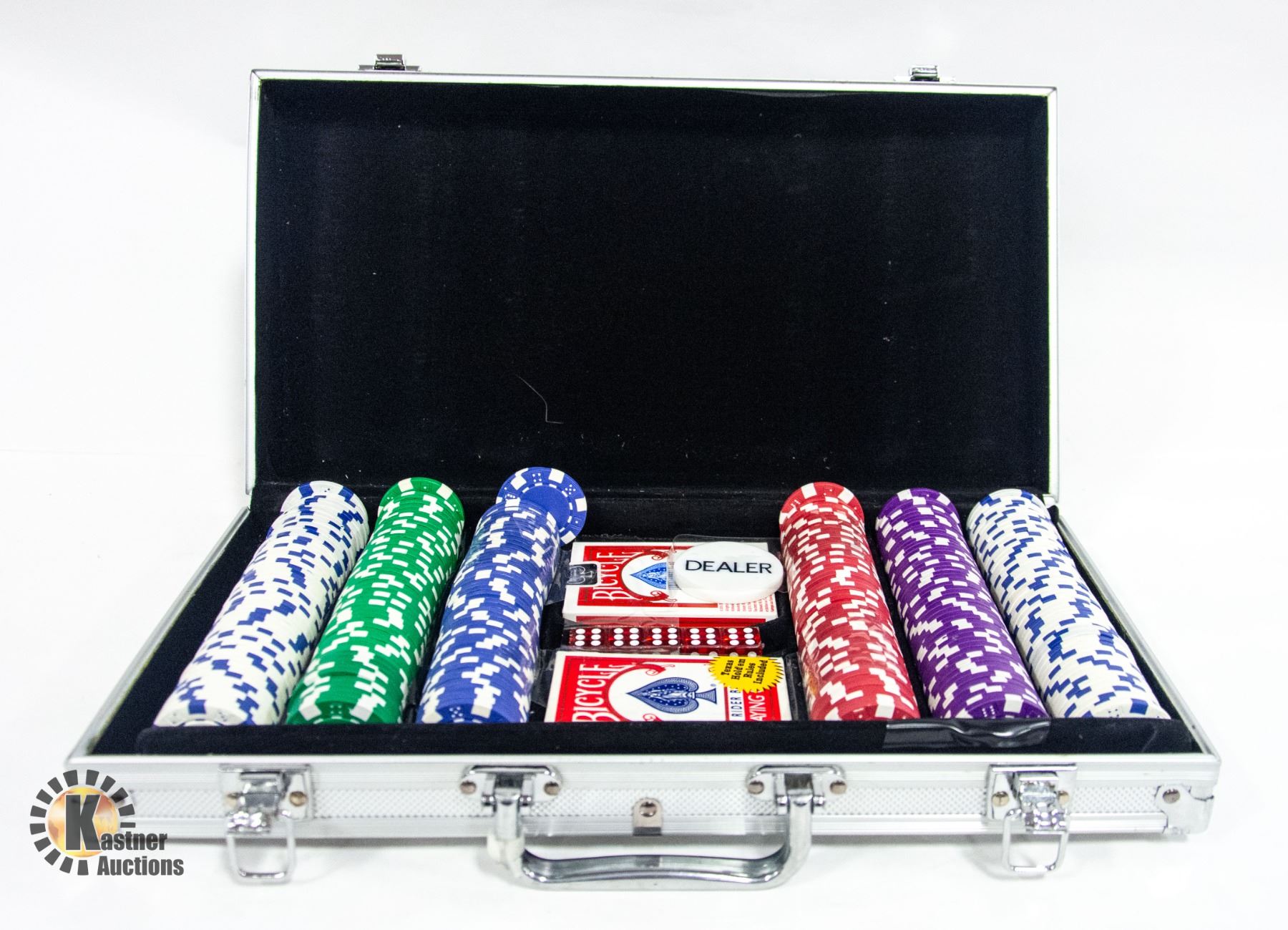 DECKS, 5 DICE, DEALER BUTTON, METAL CASE **ALL ITEMS MUST BE REMOVED BY 5PM SATURDAY, AUGUST 19TH 2023. ALL REMAINING ITEMS WILL BE SUBJECT TO A $6.00 PER DAY STORAGE CHARGE. ANY ITEMS REMAINING AFTER MONDAY, SEPTEMBER 4TH, 2023 WILL BE CONSIDERED FORFEITED. NO REFUNDS WILL BE ISSUED FOR FORFEITED ITEMS. TO SCHEDULE A PICK UP APPOINTMENT CLICK HERE