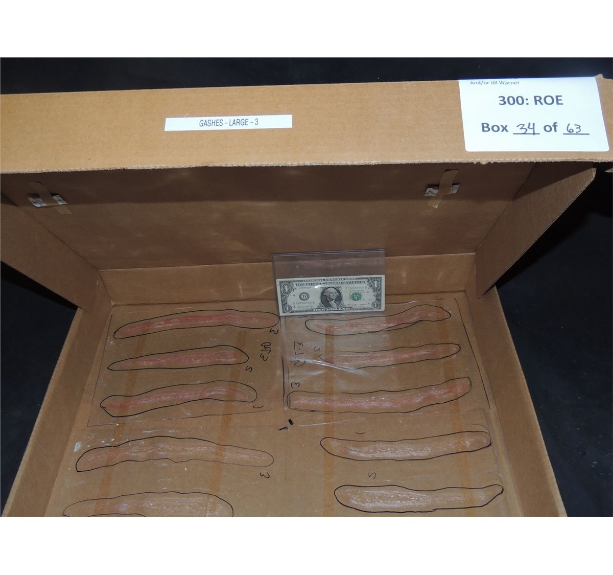 This is a huge lot of unused silicone scar, gash, and wound appliances from the Blockbuster Horror hit 300 RISE OF AN EMPIRE!