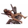 Production-made nude female dead body from the “tree of the dead” sequence in Zack Snyder’s 2006 film 300. On their march to engage the Persian army, Leonidas and his 300 Spartans come upon a village that has been wiped out by the elite Persian soldiers known as the Immortals. The inhabitants of the village were all killed and displayed in a large tree for the Spartans to find, this prop body was one of the large number of bodies in the tree. The body is made of silicone and is painted to have a bloody and dirty appearance, it has hair embedded in the head, and there are two embedded wooden arrows. It measures approximately 10½ inches long. The body comes mounted to a foam tree display with a placard featuring the 300 logo. The body and tree come in a custom made clear, white, and red acrylic display case. The display case measures approximately 16 x 13½ x 10 inches.