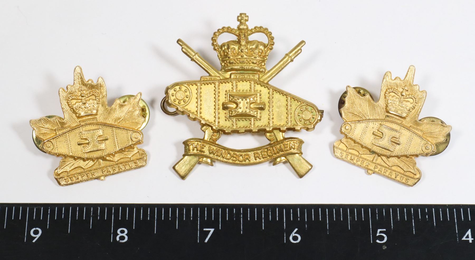 ROYAL CANADIAN ARMOURED CORPS CAP BADGE AND MATCHING COLLARS QEII QUEEN ELIZABETH II